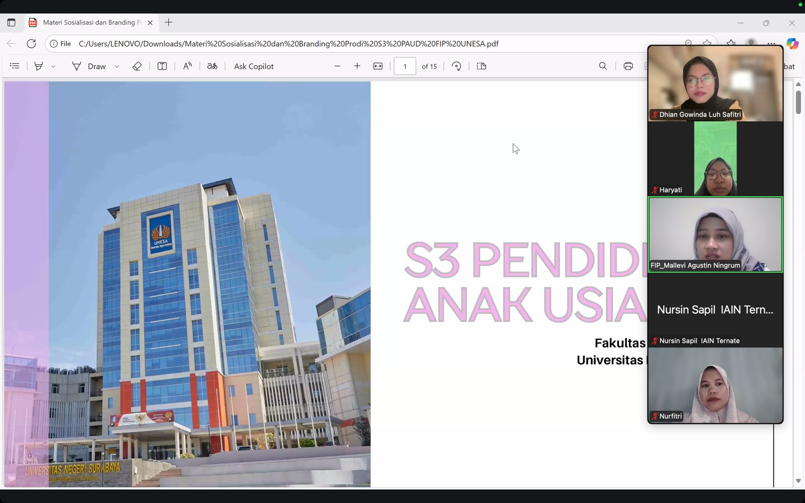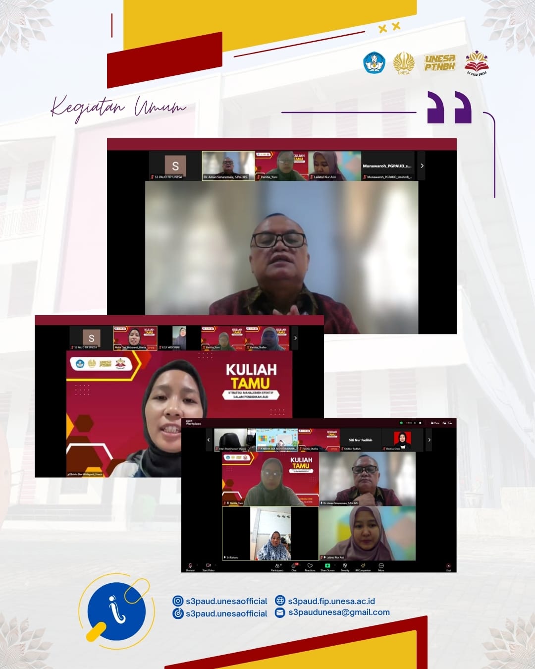 Program Studi S3 Pendidikan Anak Usia Dini (PAUD), Universitas Negeri Surabaya (Unesa), menyelenggarakan kegiatan sosialisasi program doktoral yang diikuti oleh IAIN Ternate. Kegiatan i